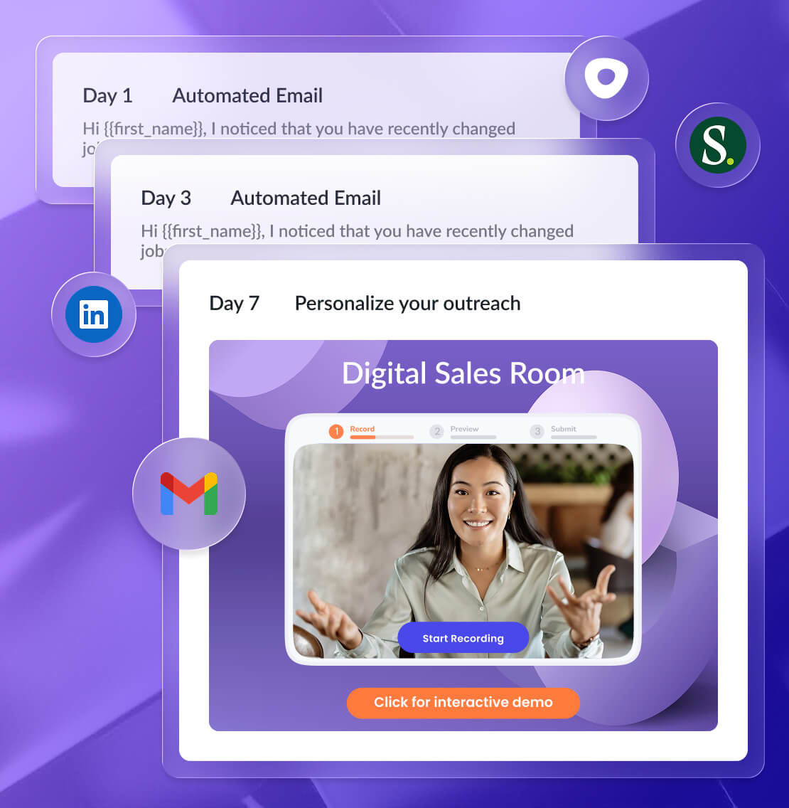 Enrich your outreach with Digital Sales Room. Grab a template or create your own in minutes. Craft personalized video experiences that turn prospects into customers 73% faster.